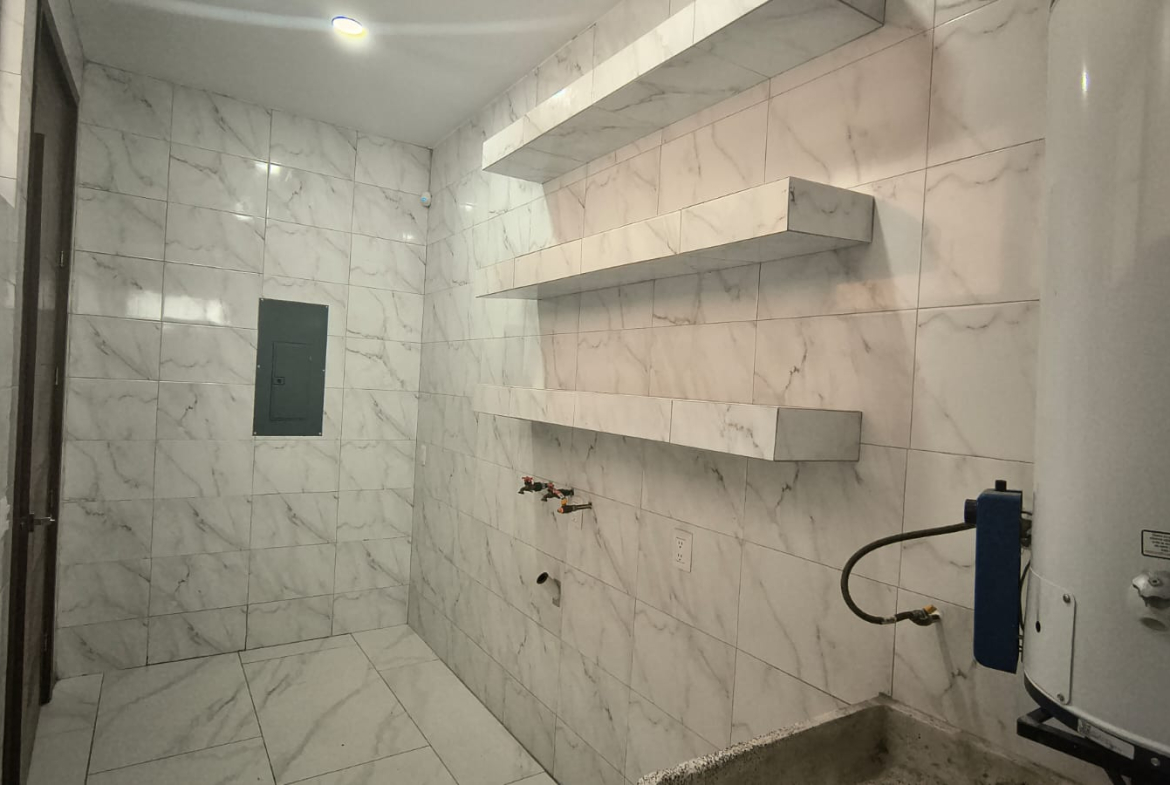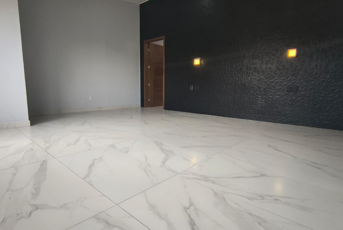 Large-format marble-like floors, providing elegance and easy maintenance.