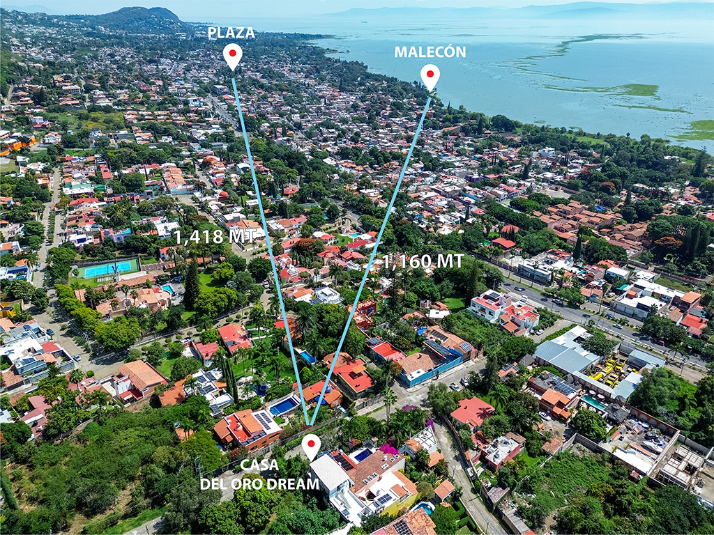 Esta casa se encuentra en Rancho del Oro, una de las zonas más codiciadas del lago de Chapala, rodeada de propiedades de lujo, amplias calles arboladas y a solo minutos de restaurantes y servicios. Cuenta con 3 recámaras, 3 baños completos y una espectacular azotea con área de asador y jacuzzi, ideal para disfrutar de las impresionantes puestas de sol sobre el lago y las montañas.