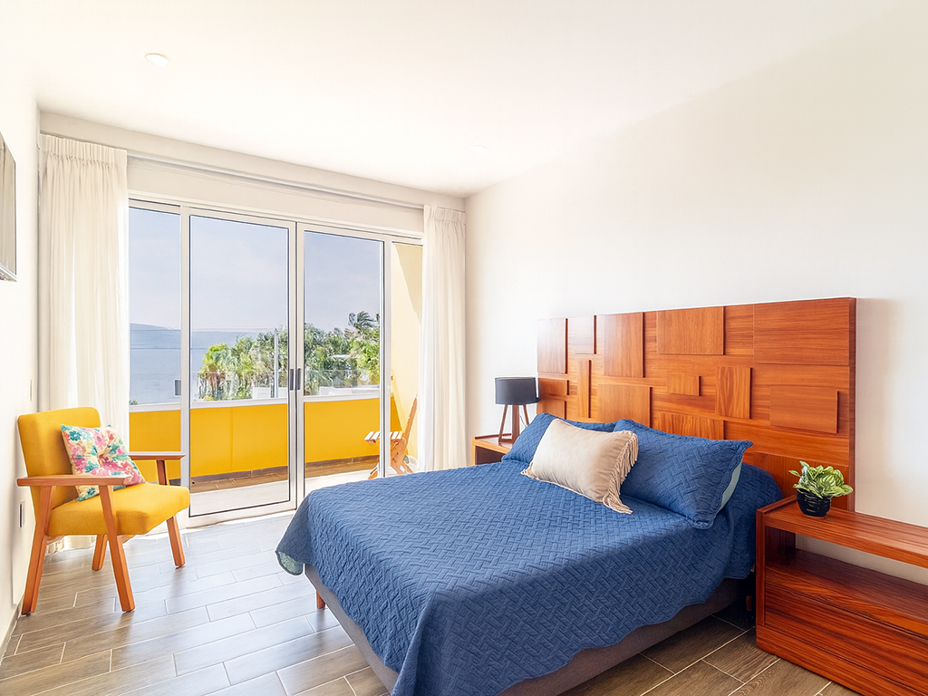 IT MUST BE ON THE COVER OF A MAGAZINE!!! This perfectly sized luxury condo with 2 bedrooms and 2 bathrooms will blow you away, it comes equipped with air conditioning, quality appliances, heated pool and common jacuzzi, outdoor BBQ area with kitchen, dining tables, lounge area, fully equipped gym, bathrooms and pool table for leisure. Its location on the fourth level gives you panoramic views of Lake Chapala, the Sierra Madre mountains and beyond, it has the perfect orientation to avoid exposure to the afternoon sun and the best view of the sunrise on the horizon of the lake. High-end amenities, pool, elevator, covered parking for two cars, and of course the SPECTACULAR VIEWS OF LAKE CHAPALA. A home for those who are accustomed to the best. Call now for a private viewing.