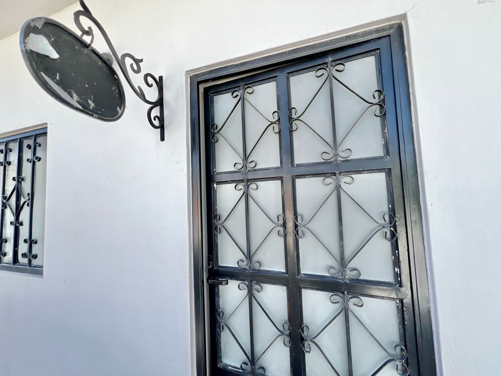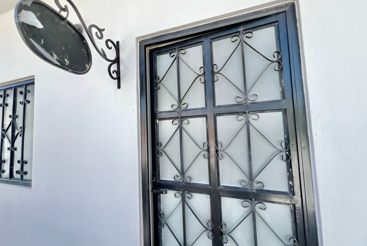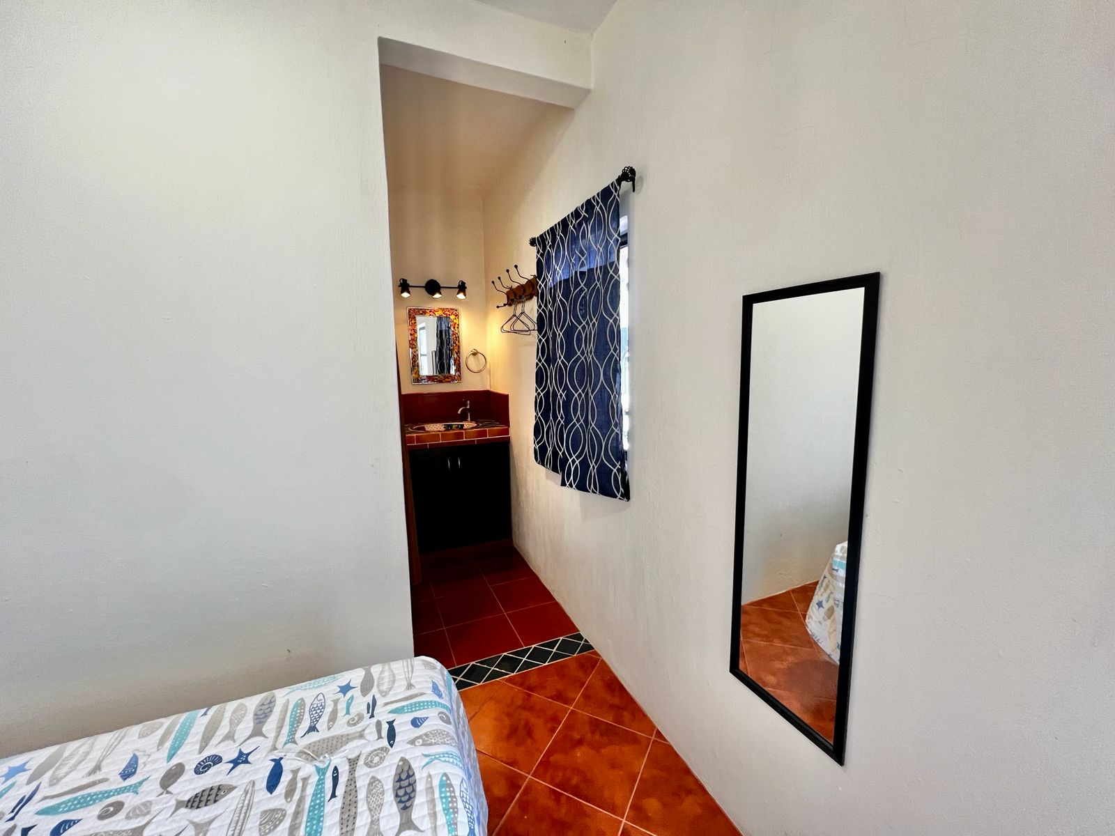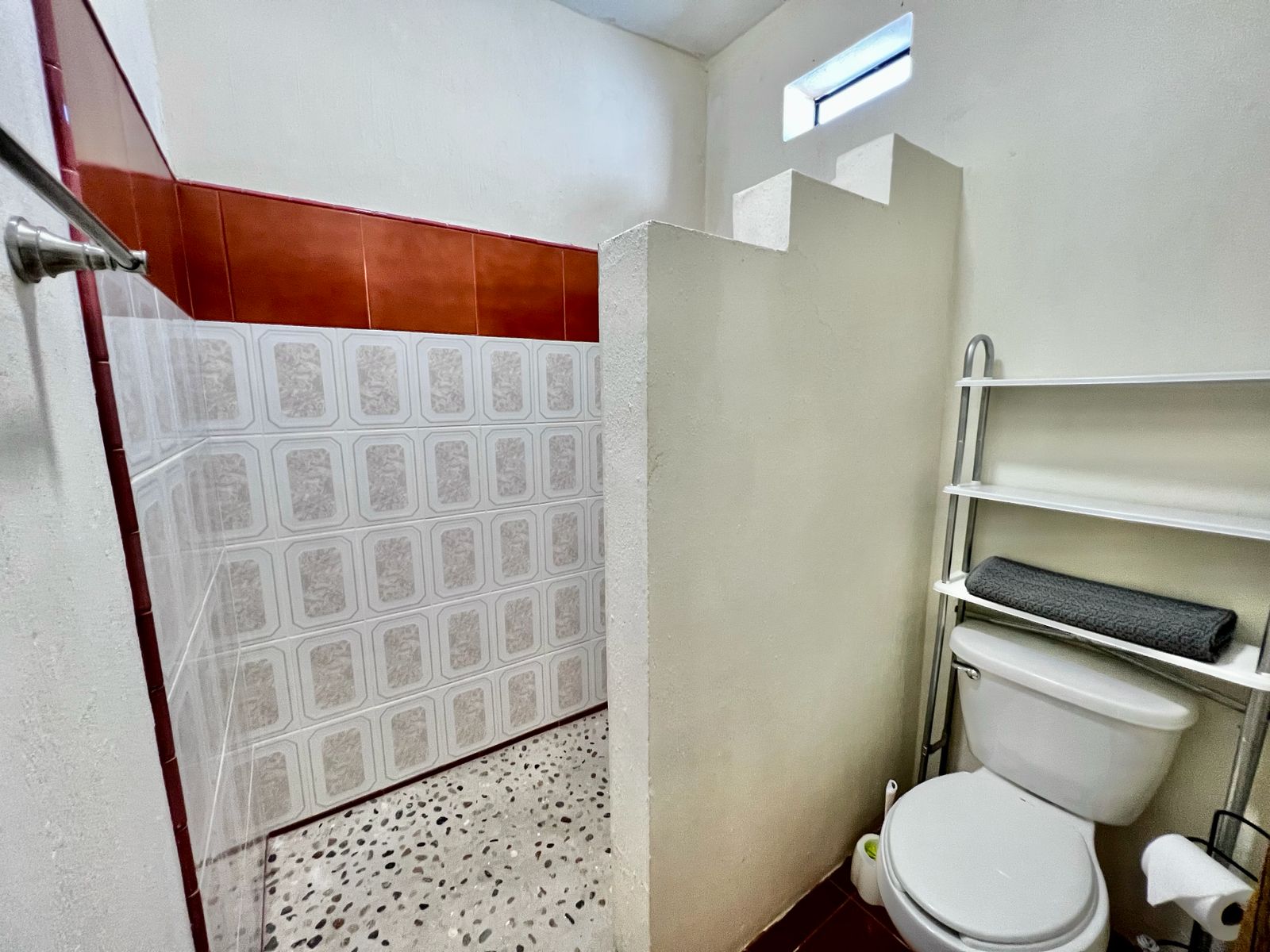 bedroom with two individual size beds, one bathroom, shared common kitchen.